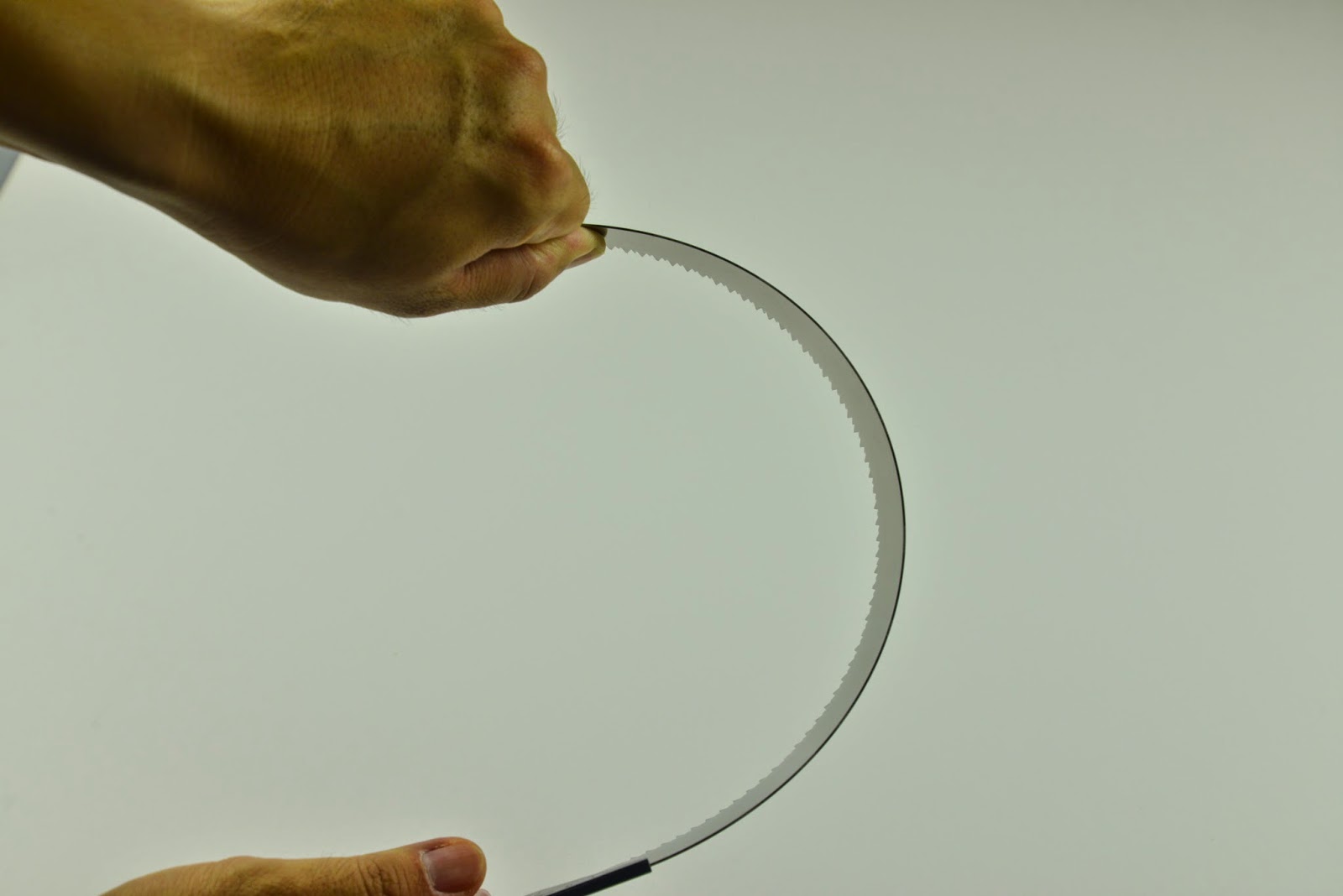 我們用手將鋸片彎曲